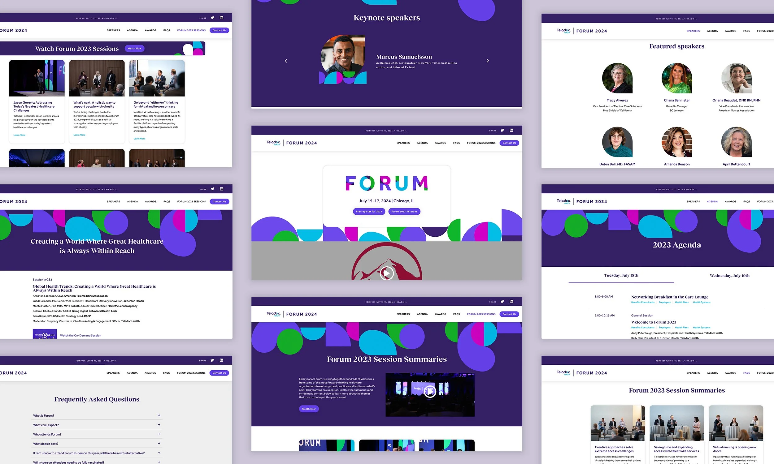 Teladoc Health hosts Forum once a year to highlight the advancements in virtual care and healthcare leaders. This project consisted of a website that was used from registration through the end of the event and beyond. The objective was to create a user experience that was both informative and sparked excitement in users. The design played off of the mark for the event with the shapes and bright colors that are featured in the brand guidelines for Teladoc Health.